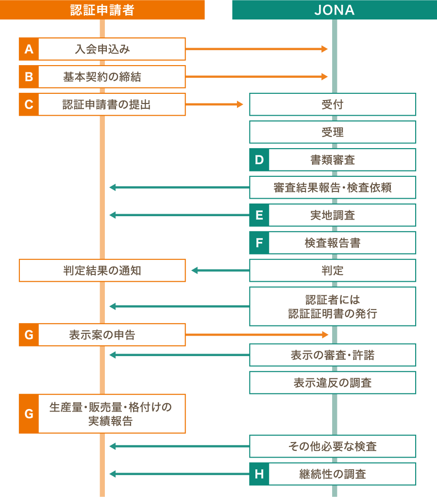 認証取得後、次年度調査までの間に、圃場の追加・新商品の追加などがあった場合は、その都度JONAに申請してください。認証工場のラインや関連施設の追加など、認証内容を大幅に変更する重大事項については、実地検査を行います。